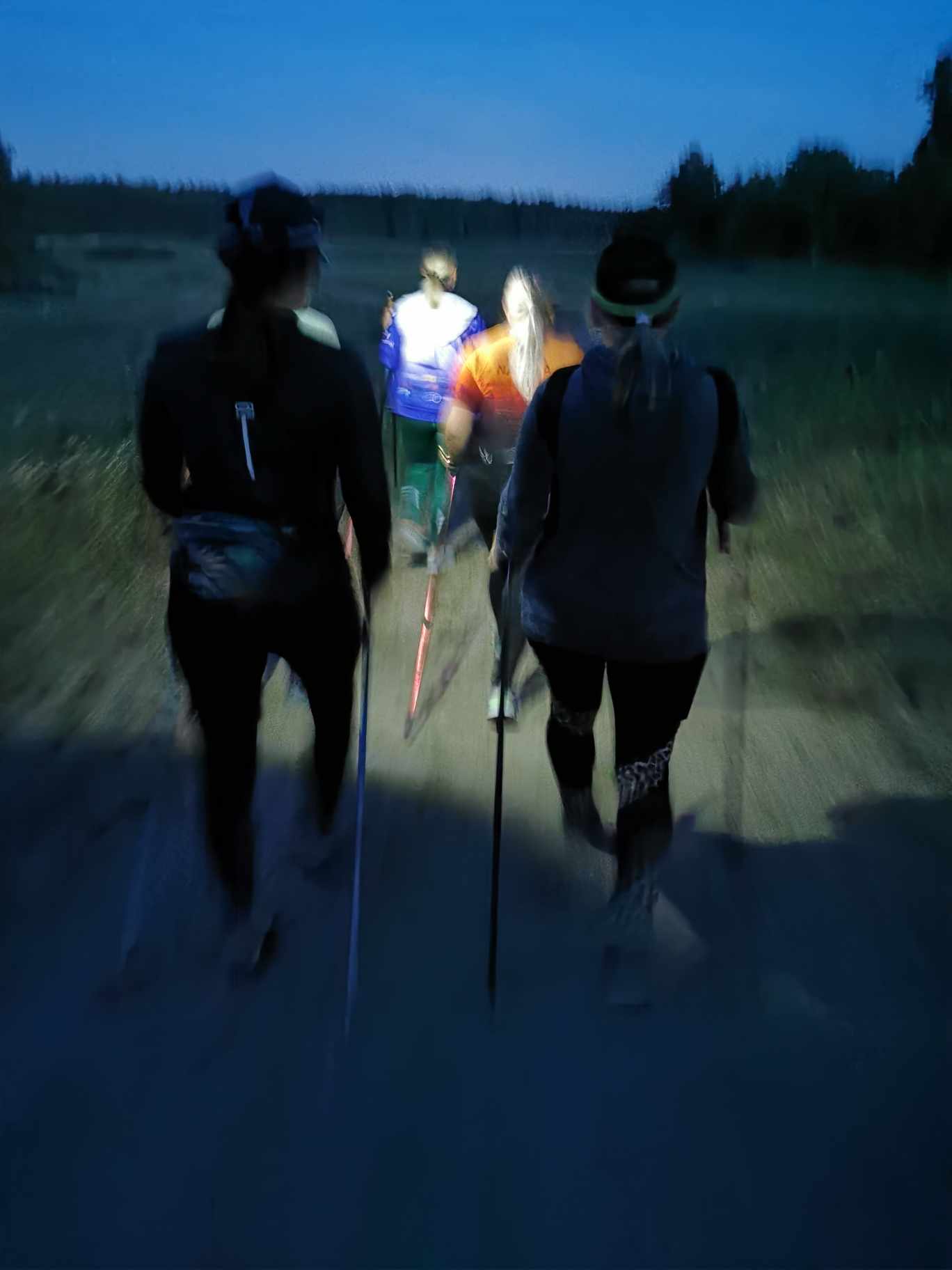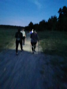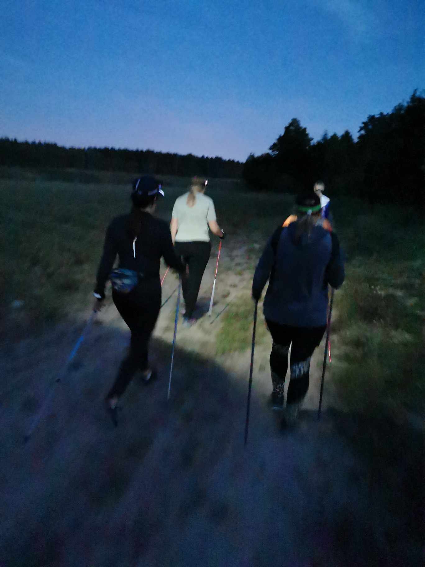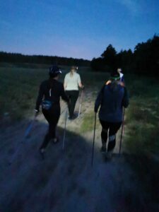 czołówkami marsz do mety, Na parkingu okazało się, że grupa wymaszerowała 12 km. Było dzisiaj raźniej, bo dziewczyny miały dwuosobowe męskie wsparcie.
