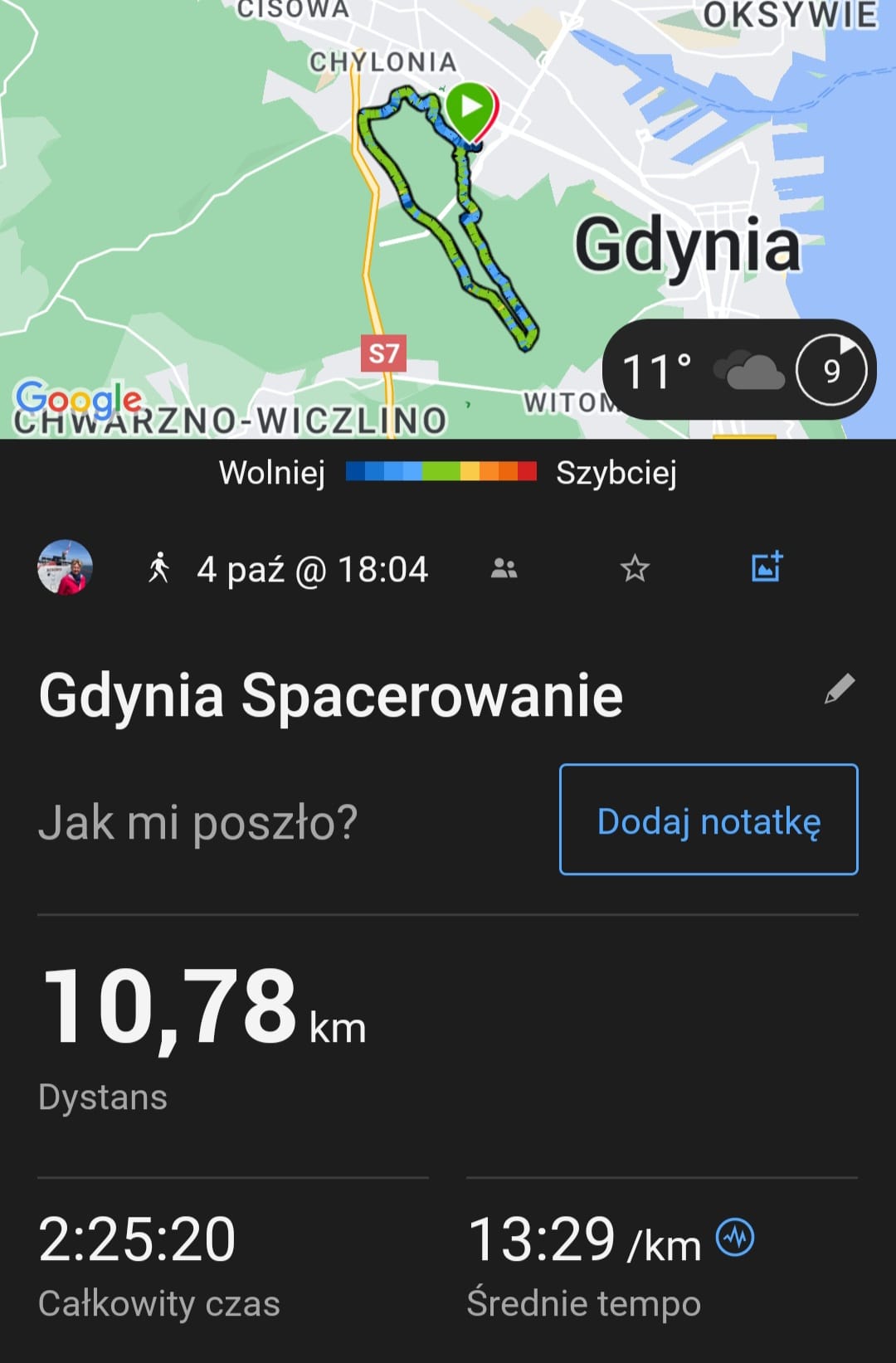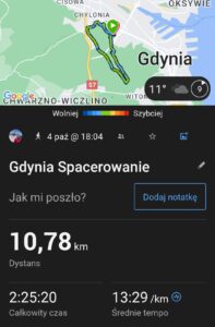 - trasa 10,78 km w czasie 2:25 minut (czas brutto)