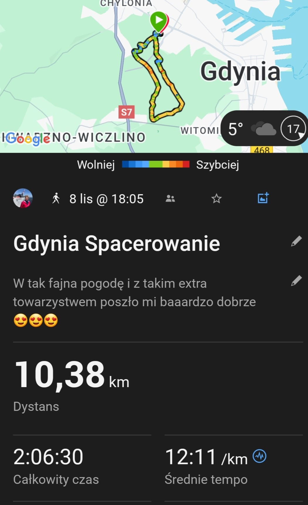 - trasa 10,38 km w czasie 2:06 minut (czas brutto)