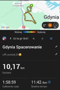 - trasa 10,17 km w czasie 1:58 minut (czas brutto)