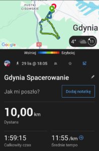 Zrobiona równa dyszka poniżej dwóch godzin. Dziś tempo narzuciła Magda, bo jej się spieszyło. Mimo szybszego tempa było fajnie i miło. Przy sprzyjającej pogodzie, podglądani przez sarny, kijkowa grupa przemierzyła znajome ścieżki.