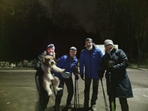 Pogoda bardzo zmienna i raczej zimna, ale to nie powstrzymuje naszej kijkowej drużyny do spotykania się w każdy piątek. Dziś trasa prowadziła głównie przez las, więc szło się całkiem przyjemnie, bo nie było tak bardzo czuć zimnego wiatru. Po drodze widok wycinanych drzew trochę psuł humor, ale szybko drużyna wracała na sportowe tory. Na spokojnie zrobili 10 km i umówili się na następny piątek.